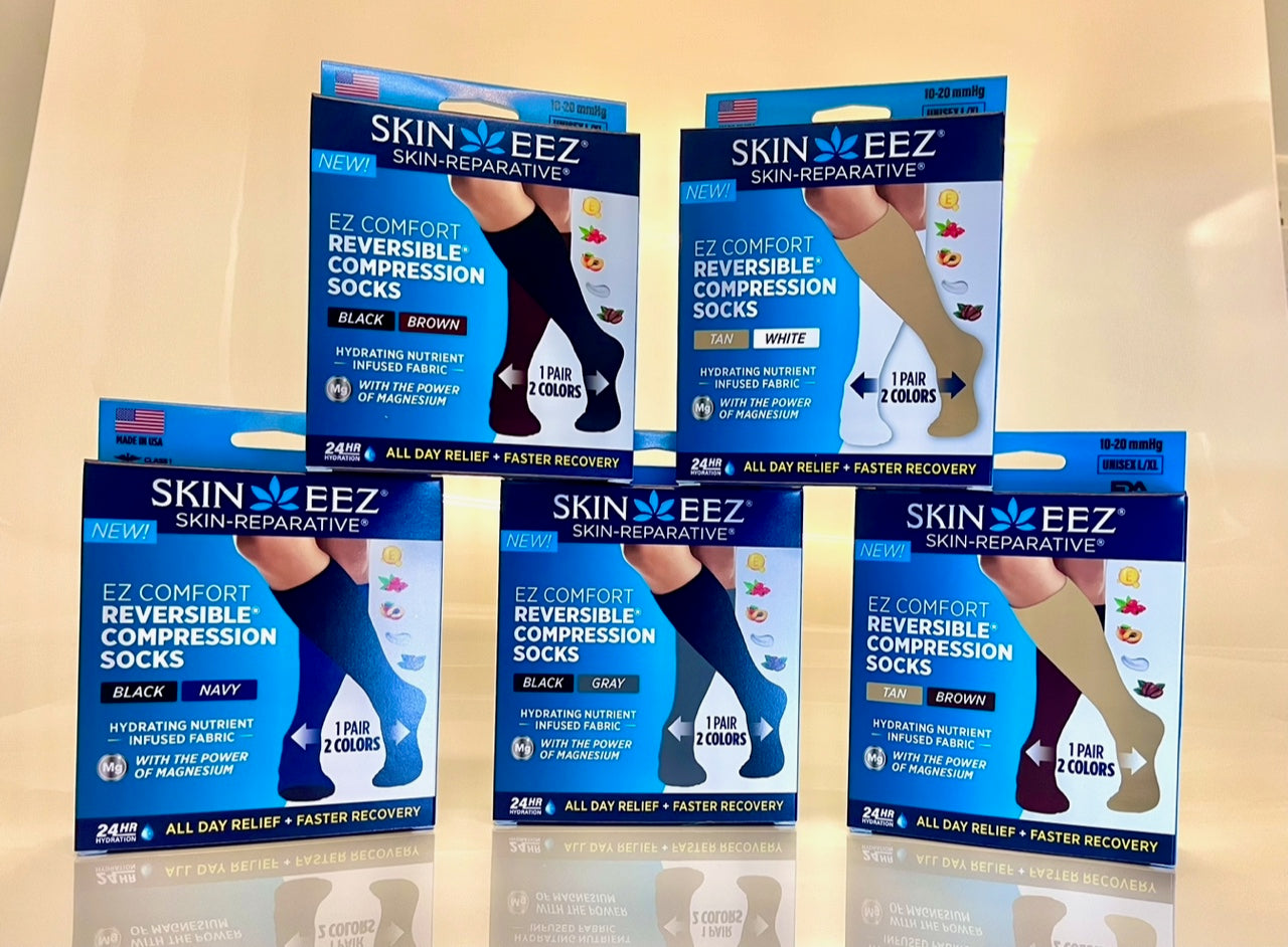 These FDA-cleared compression socks are ideal for athletes, travelers, and anyone on their feet for extended periods. Designed by surgeons, recommended by healthcare professionals for effective relief and recovery, Skineez® compression is your go-to solution for energized, healthy legs and feet. Proudly made in the USA.